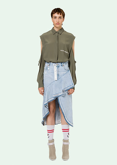 Summer 2018 calls for a new bleach trend, and it does not involve your hair. If you ask us, bleach never looks better than it does on this asymmetric constructed denim midi-skirt. Frayed hems are revived and reimagined, and zips take centre stage. Bonus, your hair won’t fall out!